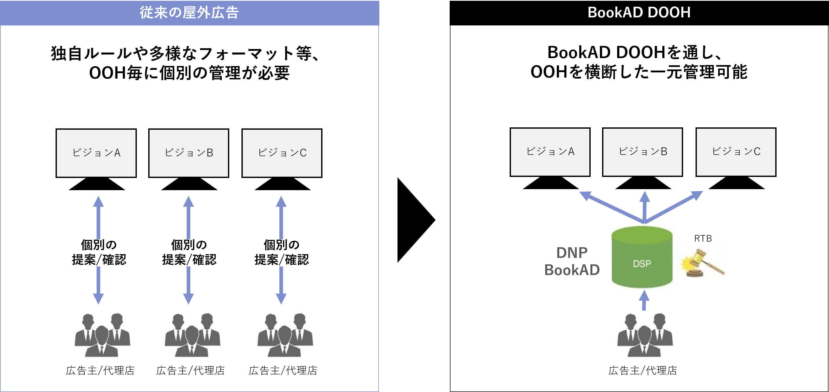 DNP BookAD DOOHは、株式会社LIVE BOARDが運営する「LIVE BOARD マーケットプレイス」において、屋外サイネージ広告のRTB取引を可能にしました。