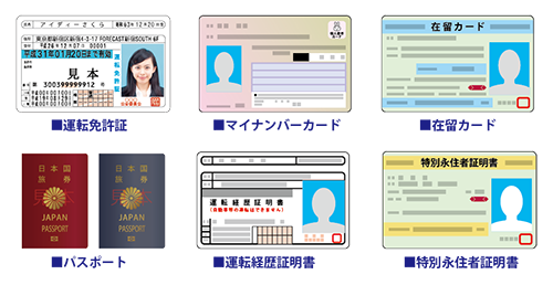 ※対応するICチップ付き本人確認書類は、免許証、在留カード、特別永住者証明書、マイナンバーカード、パスポート(旅券)です。