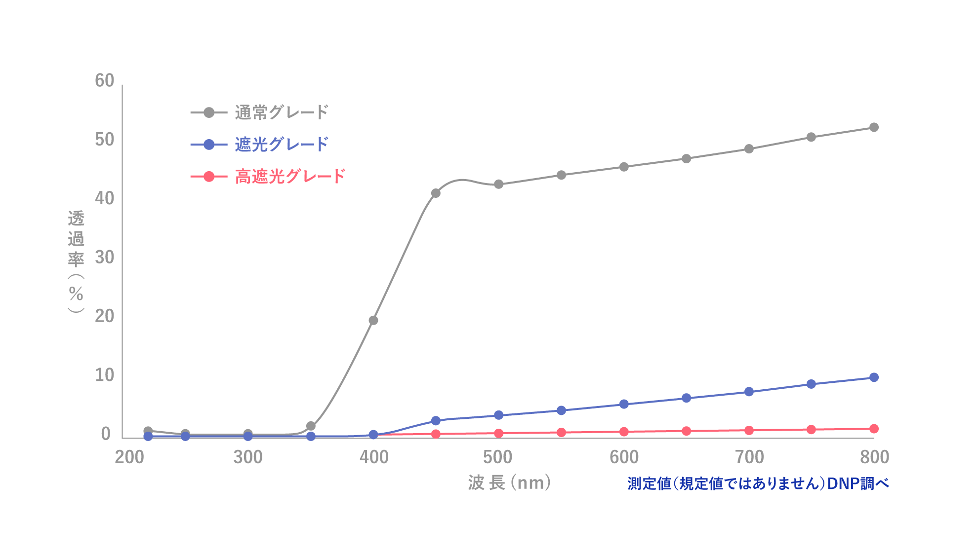 光線透過率が約10%の遮光グレードと、約1%の高遮光グレードがあります。