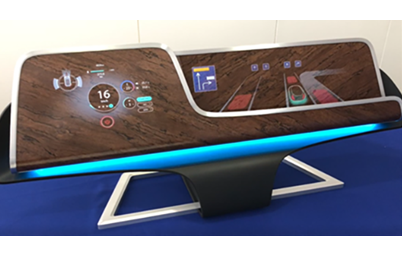 EV化に伴い、変化が求められる自動車のデザイン。DNPは押出し熱曲げした樹脂板とデザインフィルムを組み合わせることにより、2色成形のような立体的な意匠を施したフロントパネルを提供します。薄型かつ軽量のデザインパーツであり、大サイズ対応も可能です。