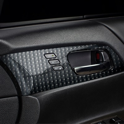 薄型でありながら立体的なデザインが表現できることを活かし、フロントグリル部分だけでなく、Bピラー等の外装パーツや、オーナメント、ドアトリム等の内装パーツにもご利用いただけます。