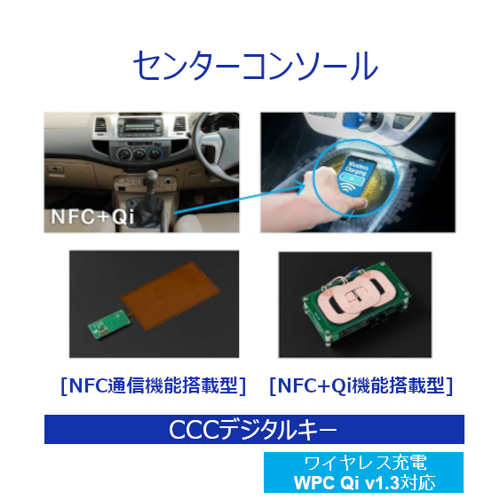 従来、NFC通信向け、ワイヤレス充電向けと、別々に組込むスペースが必要でしたが、2つの機能を集約したことでセンターコンソールなどの限られたスペースへ組込んで使用することができます。
