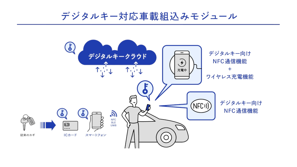 ICカード事業などで培った情報セキュリティ関連、NFC関連の技術・ノウハウを活かし、デジタルキーを実現するコア機能の一つである車載組込みモジュールを開発しています。