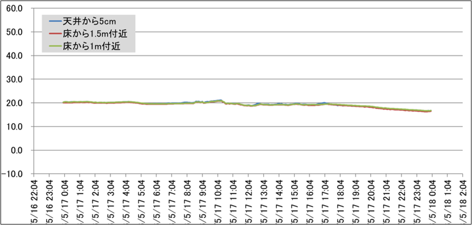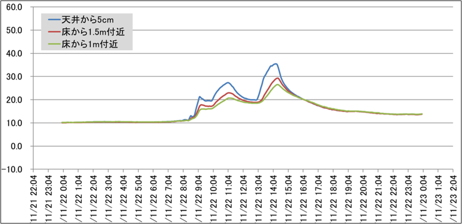 以下に、シミュレーションの基礎となる5月および11月に取得した常温トラック内の庫内温度データの一例をご紹介します。