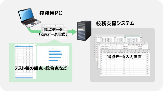 リアテンダントから出力した採点データを校務システムに連携できます。