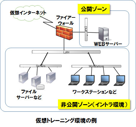一般的な企業のネットワークシステムを仮想環境(サイバーレンジ)で再現し、本物のマルウェアを使ったサイバー攻撃のシミュレーションを実行します。サイバー攻撃のシナリオは、実例に基づいたリアルな内容を多数用意しており、各シナリオを体験することで、古典的な攻撃手法から最新のインシデント事案まで、多彩な攻撃事例と対処方法を学ぶことができます。多くの事例を経験することで、未体験の攻撃にも対応できるスキルを修得することを主眼に置いているシステムです。