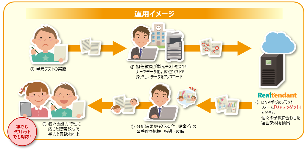 DNPが提供する単元テストを実施し、先生はリアテンダントで効率的に採点します。
