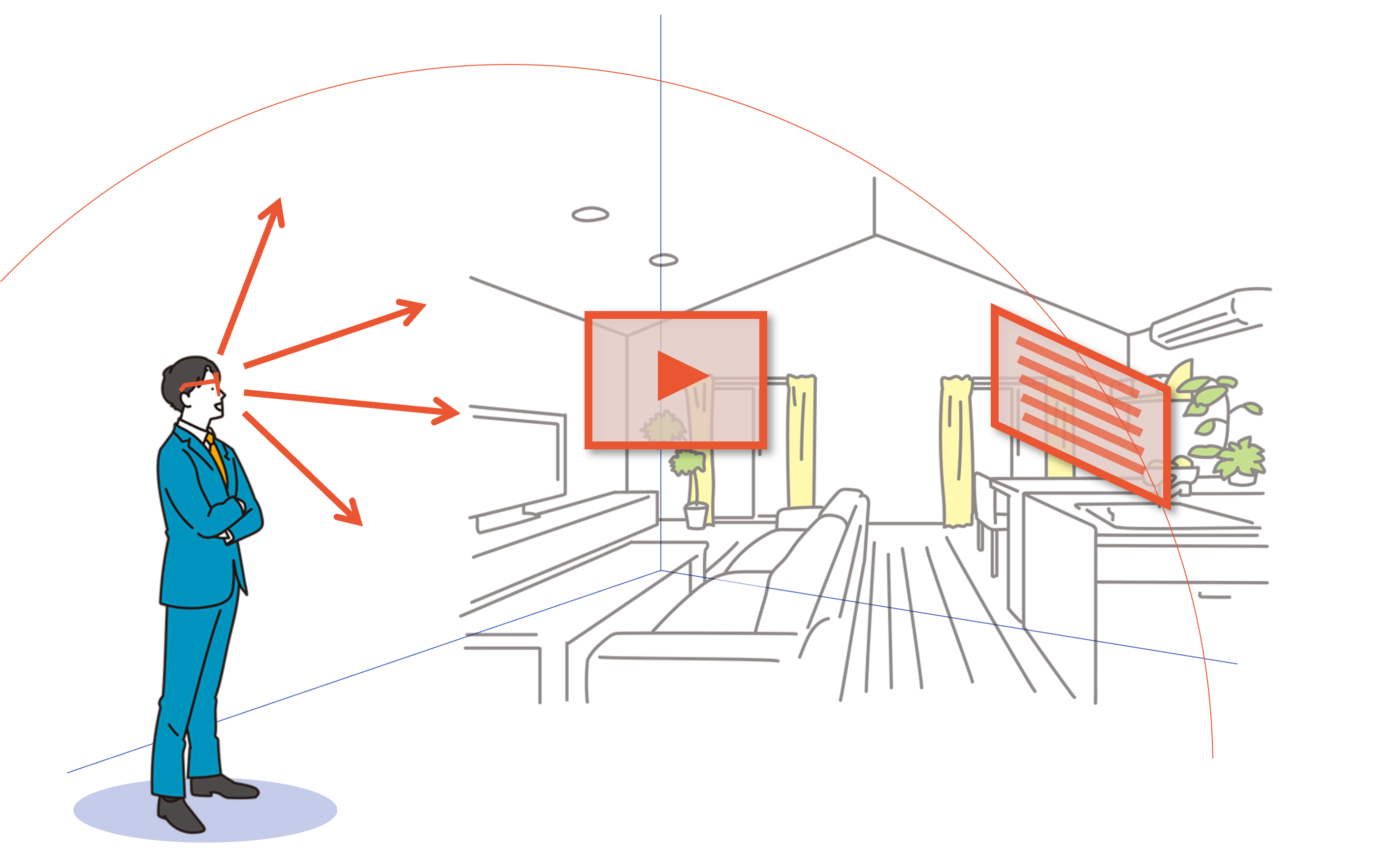 画像、動画、テキスト、Webサイト(ブラウザ)などのオブジェクトをAR空間内に配置し詳細解説も可能です。