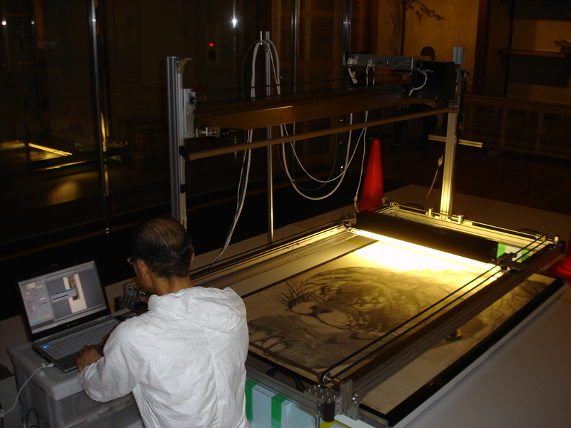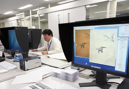 撮像で取得した高精細な画像データは、カラー・マネジメント・システム(CMS)によってデータ修整し、適切な色相・濃淡・階調で作者の筆致・筆勢などを再現します。