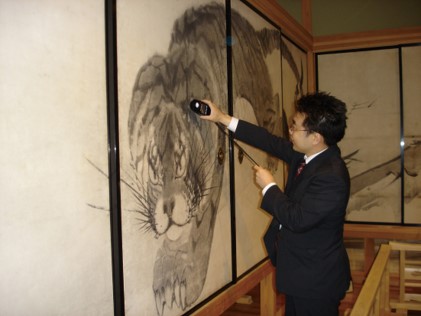 高精細デジタルアーカイブ技術を結集して開発しました。 障壁画・屏風・掛軸などの文化財に対応可能で、 精緻な再現性と耐久性を両立させた文化財複製です。金箔上に直接印刷する特許技術を有し、金地作品も忠実に再現します。