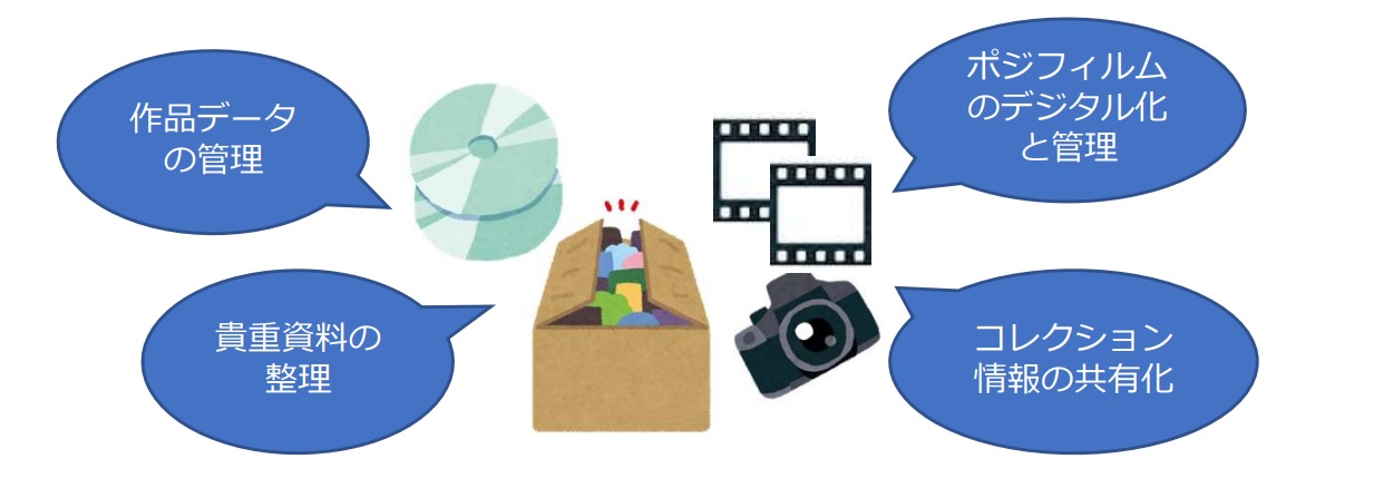 「汎用アーカイブシステム」は、博物館・図書館等で保管されている貴重資料や、研究室に蓄積された貴重なデータ、美術館に保存されている美術作品等を、誰でも簡単にデータベース化し管理できるシステムです。