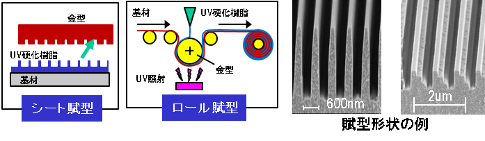 - UV(紫外線)硬化樹脂を用いて賦型するプロセス。