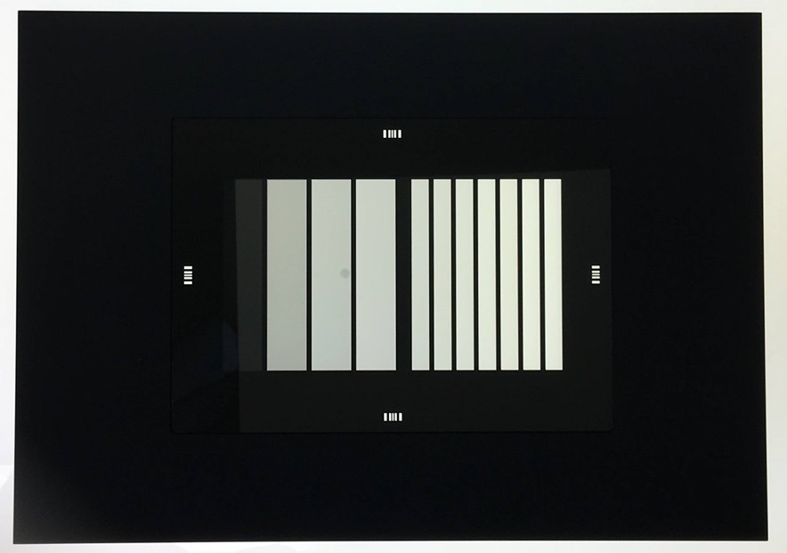段階的に変化する濃度の画像を撮影し、機器の階調性能を評価するチャートです。