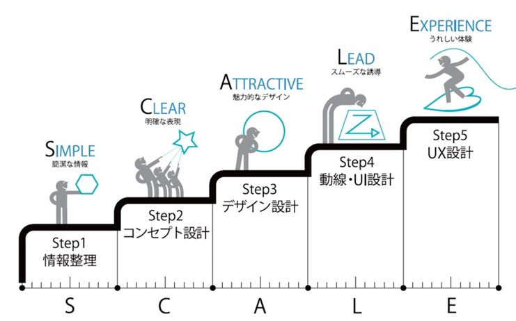 UXパンフレットは、優れたIGUDを測る5つの原則「SCALE」、それを満たすコンテンツを作成するための5つのSTEPを用いて、必要な情報が、効率的かつ効果的に「伝わる」パンフレットを実現します。