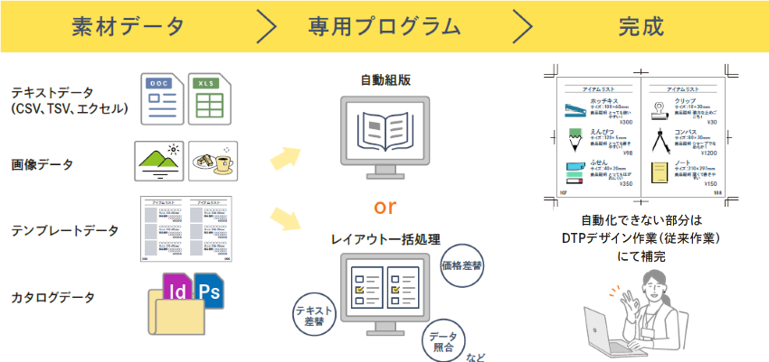 - ※2 自動化できない部分はDTPデザイン作業にて補完