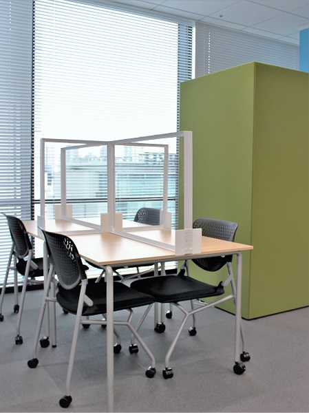 また、感染収束傾向が見られた際にも、ストレスを感じにくい「空間のマスク」を設置しておくことで、感染防止対策を変更することなく、安心・快適なコミュニケーションができる空間を維持することができます。
