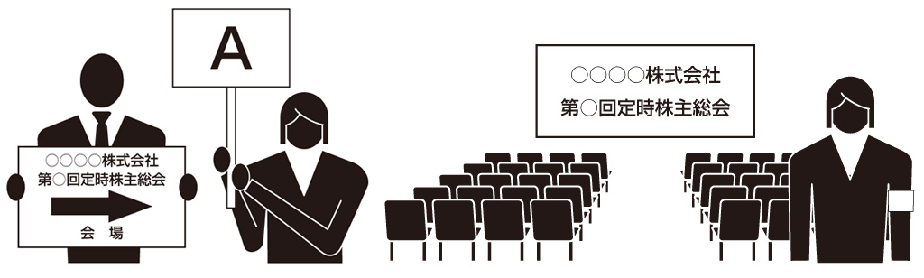 ・各種誘導サポート(会場内の株主様アテンド、近隣駅から会場への案内ボード掲出など)
