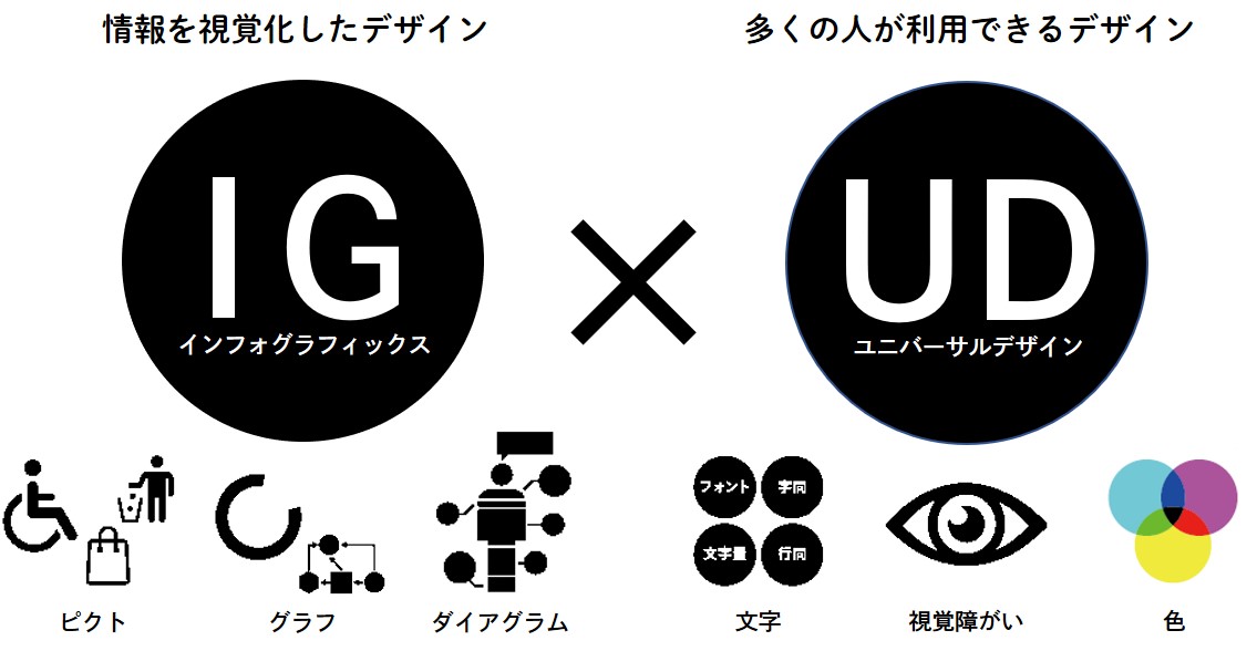 インフォグラフィックス(IG)とユニバーサルデザイン(UD)を組み合わせた新しいデザインメソッドです。