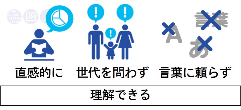 直感的に、世代を問わず、言葉に頼らず、理解できます。