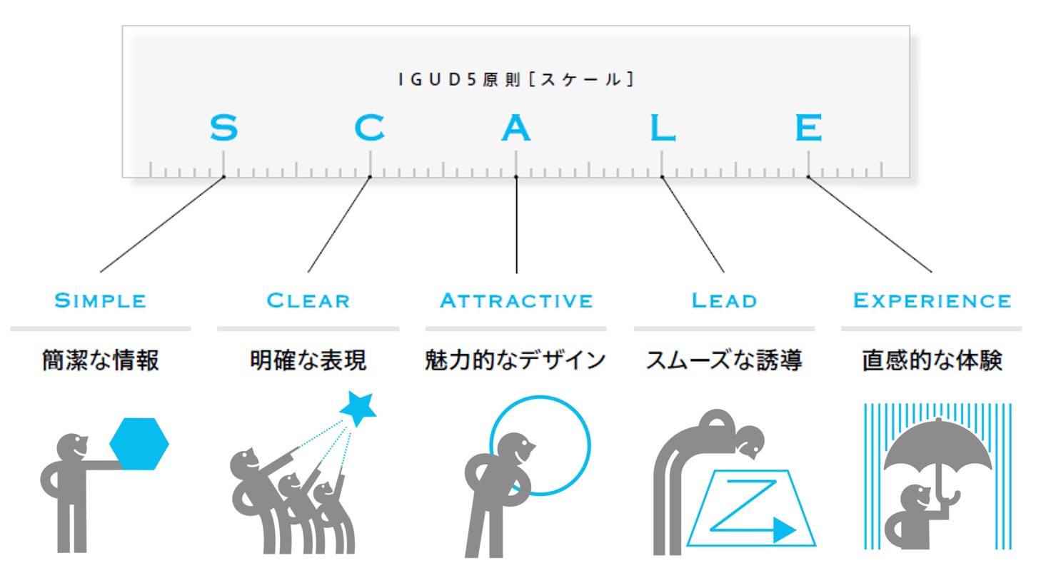 IGUDを測るための“ものさし”としてIGUD5原則「SCALE(スケール)」を策定。この基準に照らし合わせた「わかりやすい」デザインを実現します。