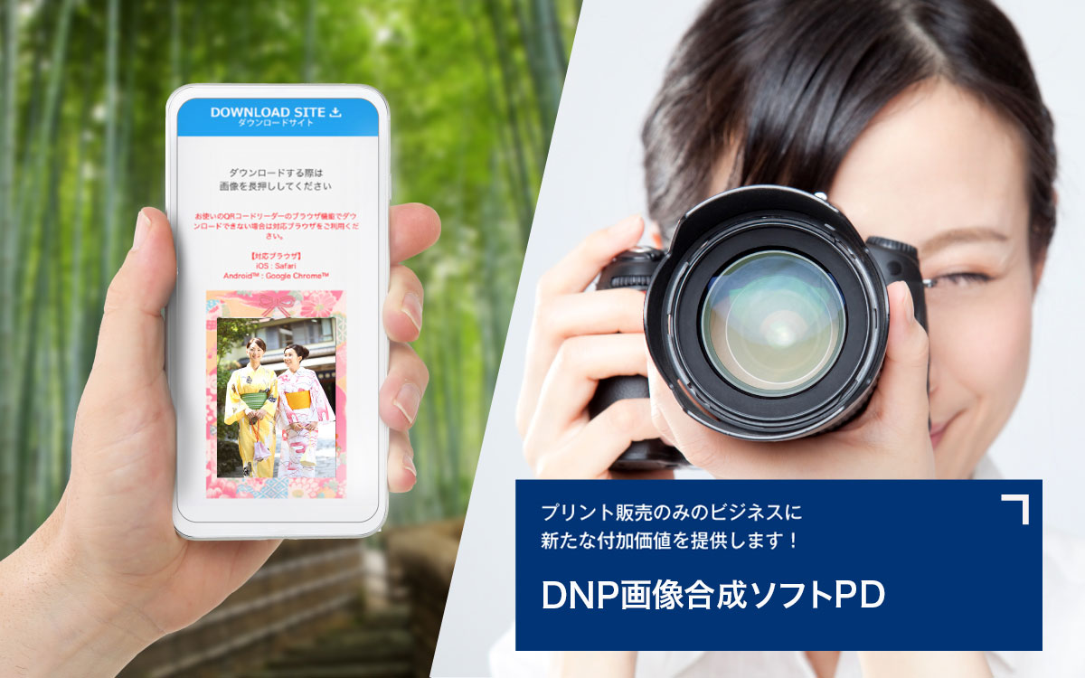 PDを使った撮影サービスで、観光地の思い出を形に残したいというニーズに応えることができます。オリジナルデザインのフレームを合成した高品質の写真プリントと画像データのダウンロードをセット販売することで売上アップも可能です。