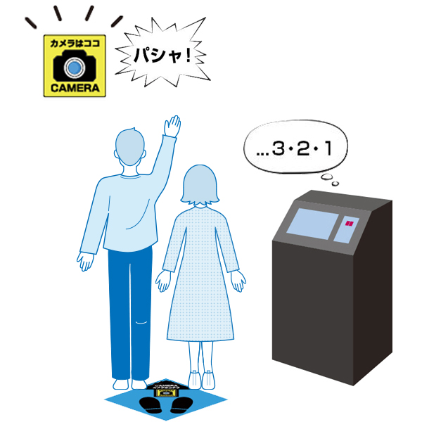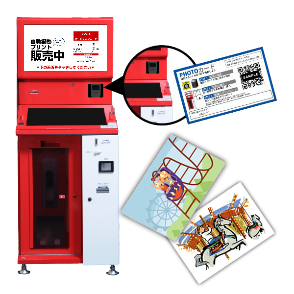 設置されたカメラが自動的に撮影をおこない、撮影した画像はプリント端末から直接購入ができます。