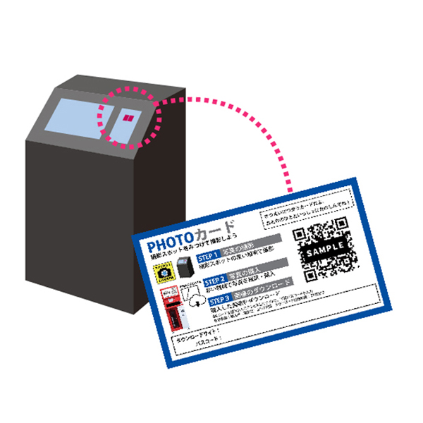 撮影画像はすべて、QRコードが印字されたカードに紐づけされるため、会場内に複数のフォトスポットを設置して来場者を誘導することで、会場や施設全体の周遊効果を高めることができます。