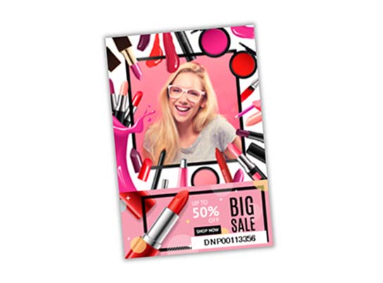 無料撮影モードを搭載しているので、イベント来場者へのノベルティとしてもご利用いただけます。また、撮影後のディスプレイに広告を表示したり、写真プリントにも広告やクーポンを掲載したりできるので、Webサイトへの誘導や商品購入にも効果が期待できます。 |