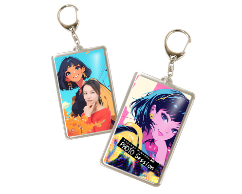 出力した写真プリントからオリジナルのキーホルダーや缶バッジなどを作成し、付加価値商材として単価を上げて販売することができます。