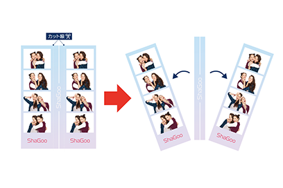 ミシン目入りの用紙は中央に2本の切り離し線があり、ハサミ不要で簡単に切り取れます。例えば、韓国プリクラのようなテンプレートで写真をシェアするのに最適です。