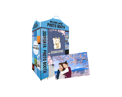 常設モデルでは、設置先の仕様にあわせてカスタマイズしたオリジナルの背景デザインで撮影し、写真プリントと画像データをその場で提供します。観光地や施設運営のご担当者さまにおすすめです。