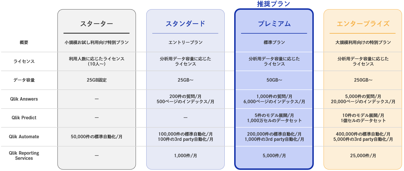 Qlikを利用する際には、プランとライセンスの選択が必要になります。