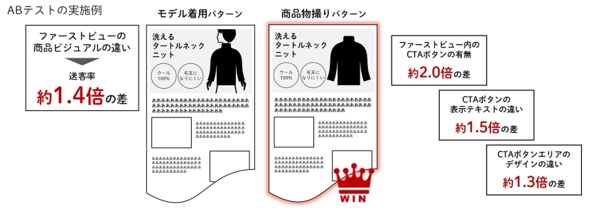ファーストビューやCTA(コールトゥーアクション:行動喚起)ボタンのABテストを繰り返し、購入ページへの送客率を改善。 |