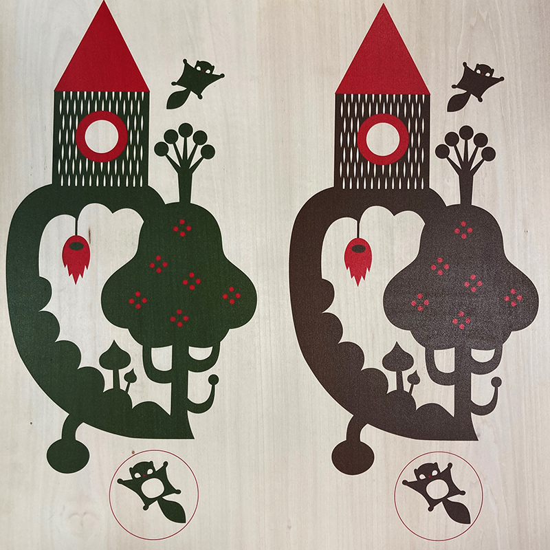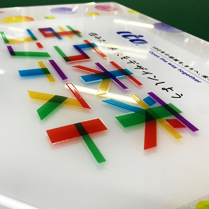 アニメのセル画のような透明感と鮮やかな発色を再現する印刷技術です。透明素材に裏刷りを施すことで、奥行きのある立体的な表現が可能となり、作品に独特の存在感を与えます。UVインクジェットの高精細な描画性能により、繊細な線や色のニュアンスも忠実に再現。展示用アートやキャラクター表現など、作品の魅力を最大限に引き出す用途に適しています。