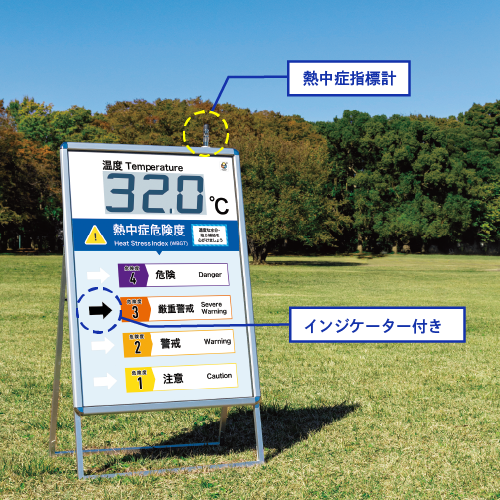 高い視認性と耐候性を兼ね備えた屋外用サインボードで、特に熱中症対策の注意喚起に特化した製品です。温度や湿度の変化に応じて色が変わる特殊インクを活用することで、視覚的に直感的な訴求が可能です。これにより、作業環境の状態をリアルタイムで可視化し、現場の安全意識向上に貢献します。工事現場や学校、公共施設など、幅広い場所での安全対策に活用されています。また、設置環境や用途に応じたカスタマイズにも柔軟に対応いたします。