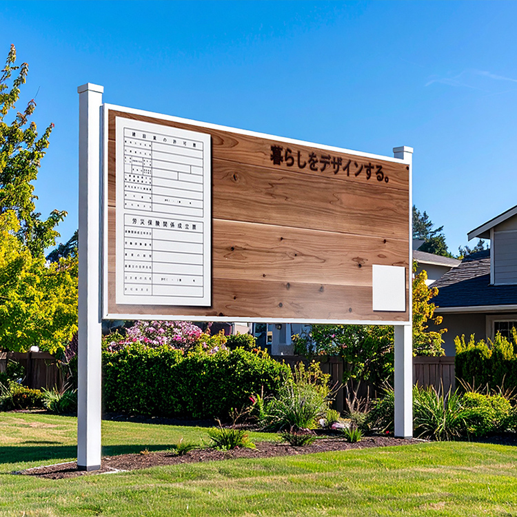 屋外での長期使用に耐える高耐候性と、素材への高い密着性を両立した建築用サイン・看板向けの印刷ソリューションです。プラスチック製のプラダン素材にUVインクジェットでダイレクト印刷を施すことで、住宅建築期間(約6カ月を想定)を通して屋外での使用が可能です。軽量で丈夫なため取り扱いやすく、廃棄も容易です。※廃棄時は必ず自治体のルールに従ってください。