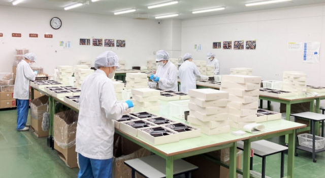 お客様には商品を個別に包装し、近隣の指定⼯場に配送いただくところまでをお願いしています。その後は全国各地にある私たちの⼯場において作業全体の設計からはじまり、商品の外箱セット、在庫管理、賞味期限管理、衛⽣管理、出荷管理などをトータルに代⾏します。