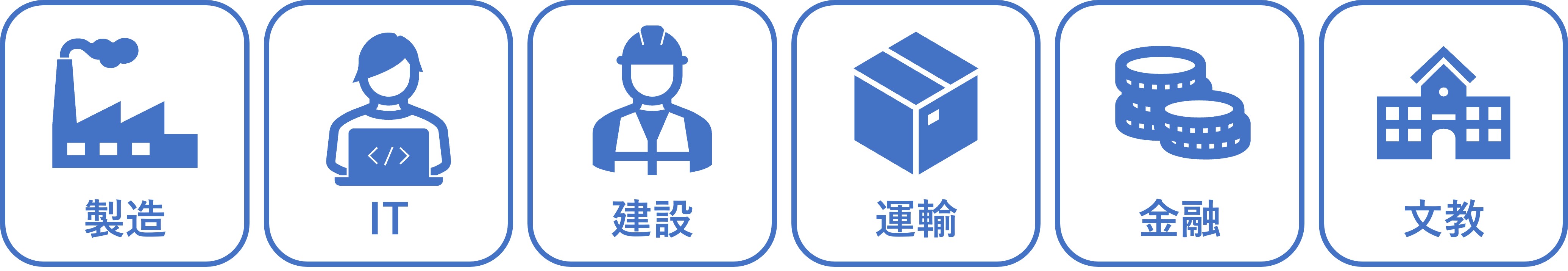 製造、IT、建設、運輸、金融、文教などさまざまな業界で導入実績があります。