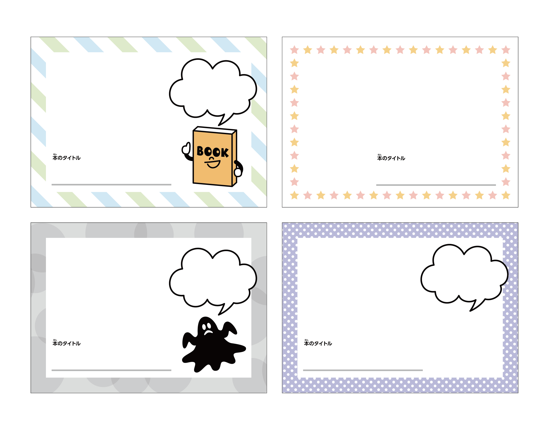 子どもたちが本のPOPや帯を自由に書くことができる、かわいいデザイン入りの台紙です。イラスト入りで子どもたちの「書く」ハードルを下げ、「紙を切る暇もない」という先生の声を反映したキットです。