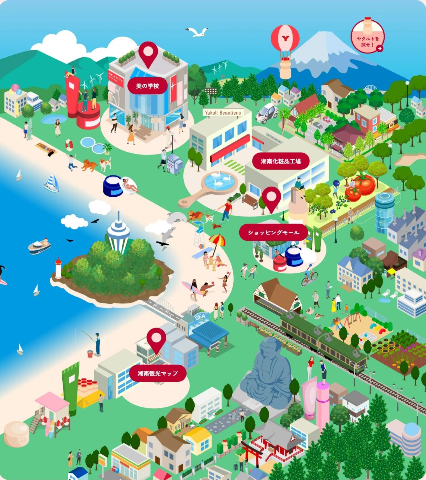 湘南化粧品工場を360°映像で再現した「バーチャル工場見学」や「美の学校」など多彩なコンテンツを配置しています。ブランドへの理解を深めると同時に、製品購入や研修ツールとしての活用にも貢献します。学びや購入導線も組み込んだ、楽しみながらブランドに触れられる新たな情報発信拠点です。