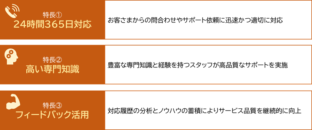 24時間365日の対応体制を整え、専門性の高いオペレーターによる的確な応答で、発生した課題を迅速に解決します。