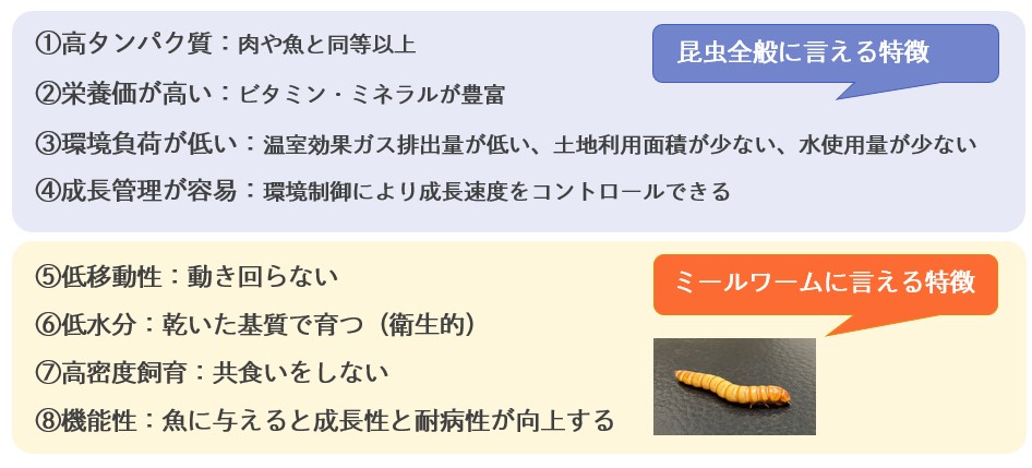 持続可能な水産養殖を支える新たな飼料原料として、ミールワーム(チャイロコメノゴミムシダマシの幼虫)の飼育システムを開発しています。