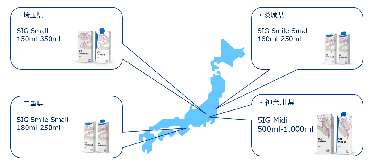 SIGの充填機は、国内の飲料製造メーカーが採用しております。現在、神奈川県、埼玉県、三重県にSIG機が導入されていて、2025年秋には、茨城県でも稼働を開始する予定です。委託充填をご検討される場合は、下記のフォームから問合わせをお願いいたします。