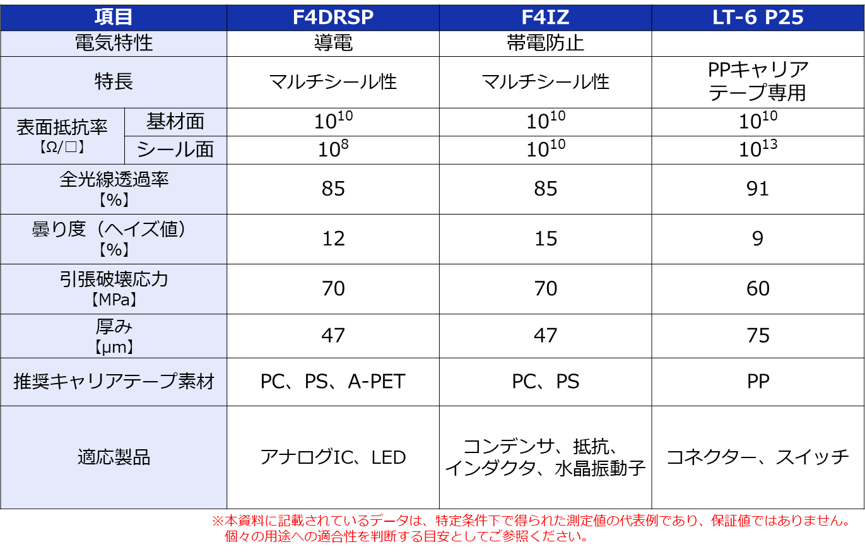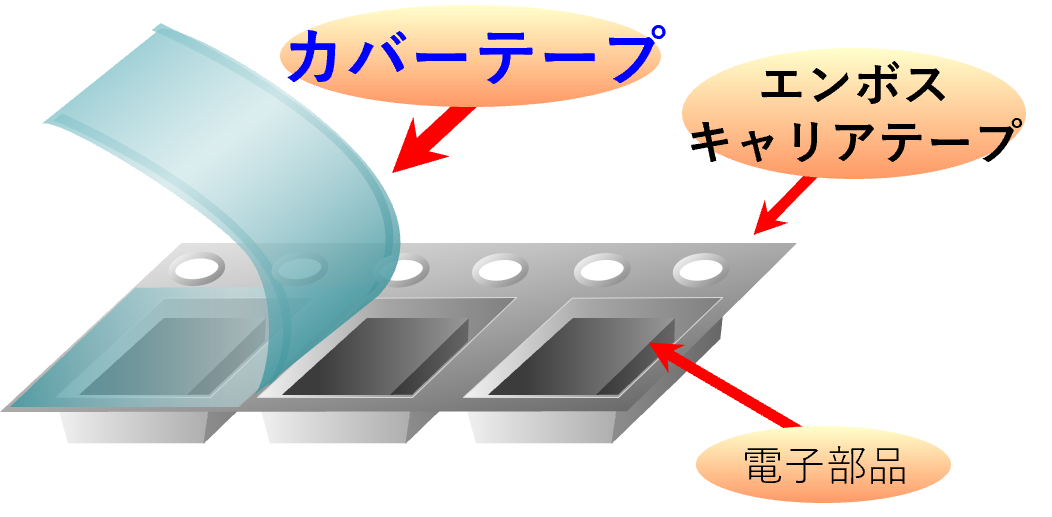 電子部品や半導体部品の搬送に使用されるエンボスキャリアテープ(搬送用資材)をシール(封止)する製品です。 コネクター、水晶振動子、LED、スイッチ、コンデンサー、コイル、抵抗、半導体(アナログIC、ロジック、メモリ)など、 さまざまな製品向けでご採用いただいております。