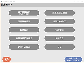 2行印字サポート機能/登録住所からの住所選択機能/連続印字機能/ラクラク印字位置調整・設定変更機能/住基システム連携機能/個人情報に配慮したのぞき見防止機能/電子公印登録・変更機能/新元号設定/元号変更機能/印字濃度調整機能設定ファイルの一括保存・読み込み