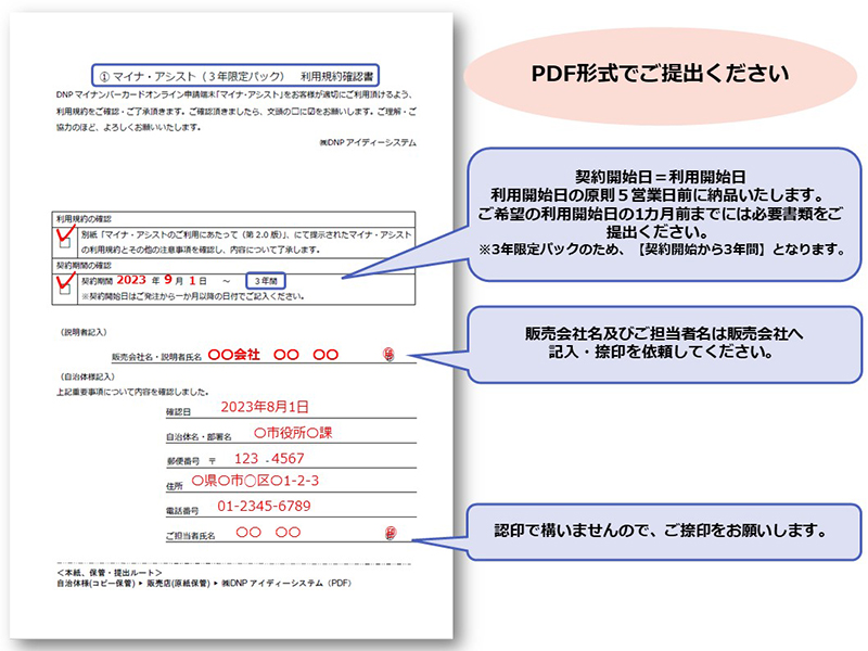 マイナ・アシスト(3年限定パック) 利用規約確認書の作成例 |