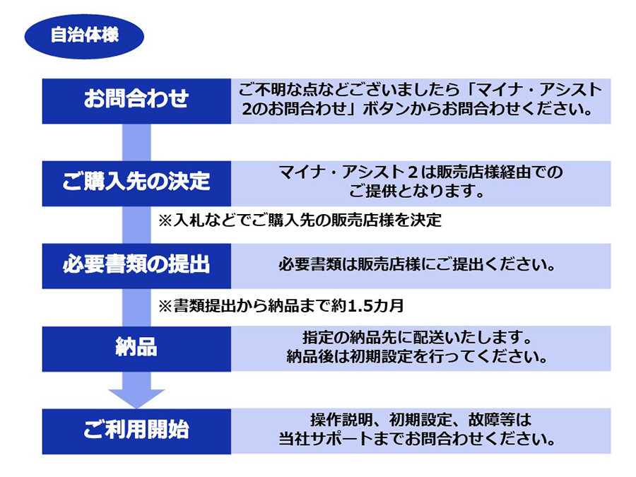 本ページでは、自治体様向けにマイナ・アシスト2の導入の流れを解説しています。