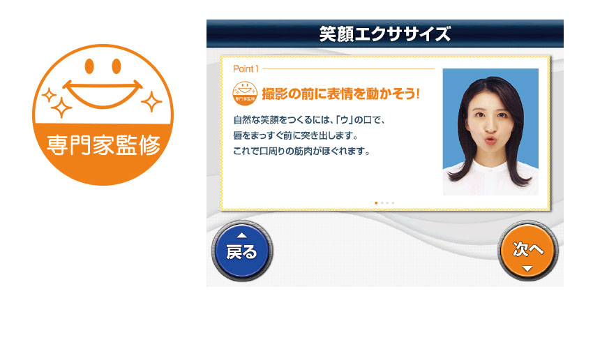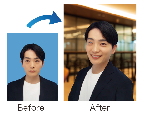 笑顔専門家監修の音声ガイダンス機能が自然な表情づくりをサポート。スタジオ撮影にも匹敵するライティング、選べる背景、自分好みに調整できる肌補正・明るさ調整機能により「自分らしい」プロフィール写真に仕上げることができます。