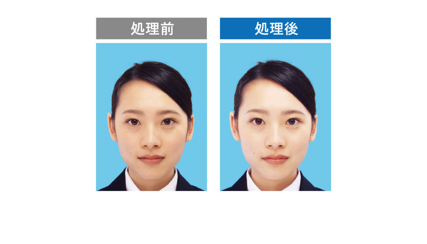 肌質&明るさ補正機能搭載。操作画面で確認しながら自分好みの仕上がりに調整できます。 |