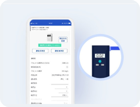 専用のアルコールチェッカーとの連携で、結果はアプリに自動入力、クラウドに自動保存されます。アルコールが検知された場合のアラート機能も搭載しています。
